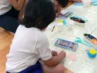 製作で、一緒に七夕さまを作りました。