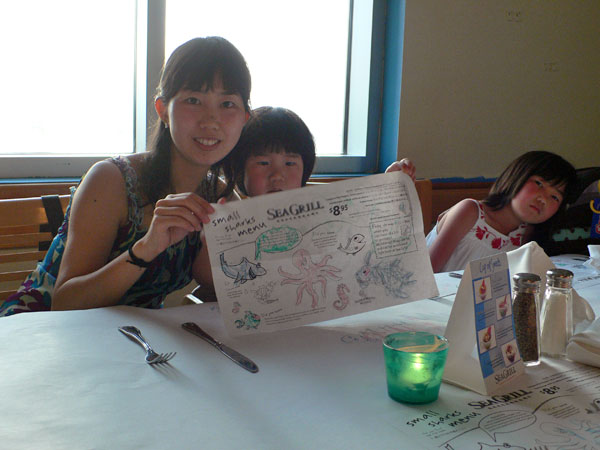 クジラのしっぽがあったり、テーブルでは自由にお絵かきができたり。