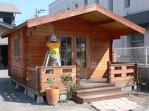 お店のログハウスのペンキを1日かけてはがしたり(夫が)、