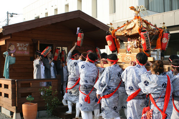 お祭りのお神輿は、今年もお店に入れてもらったら、