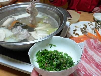 お野菜も一緒にお鍋の中へ。