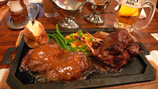 寝起きとは思えぬ勢いで、ステーキ、ハンバーグ、骨付きラムまでかぶりつき