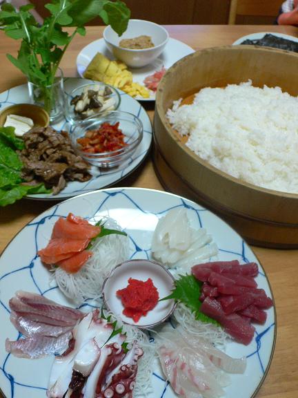 夕飯は長女希望の手巻き寿司。