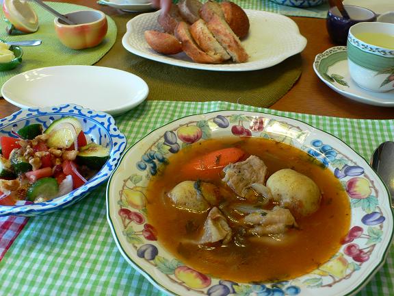 ポトフと農の会の野菜で作ったサラダ、それから焼きたてのパン。