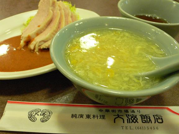 左の写真の蒸し鶏は夫が頼んだ定食についてたもの。