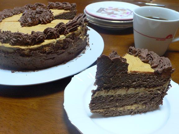 去年と同じキャラメルクリームとチョコクリームをサンドしたケーキ。