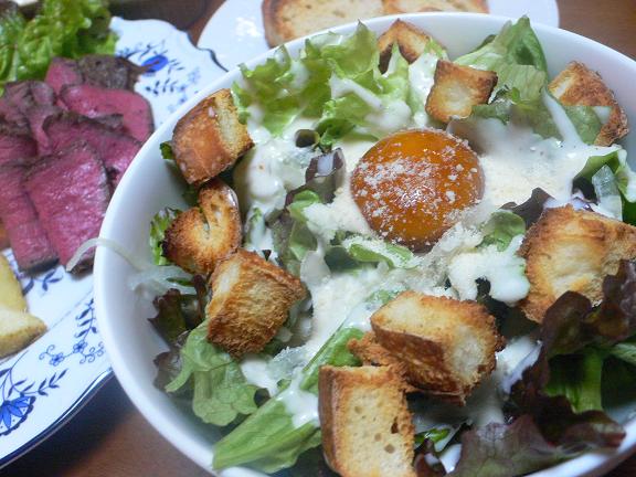 黄身醤油をトッピングしたシーザーサラダ。