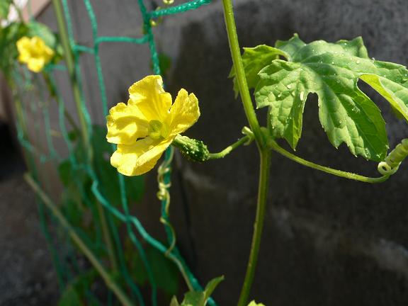 花の後ろにちょこんとかわいいベビーゴーヤがw