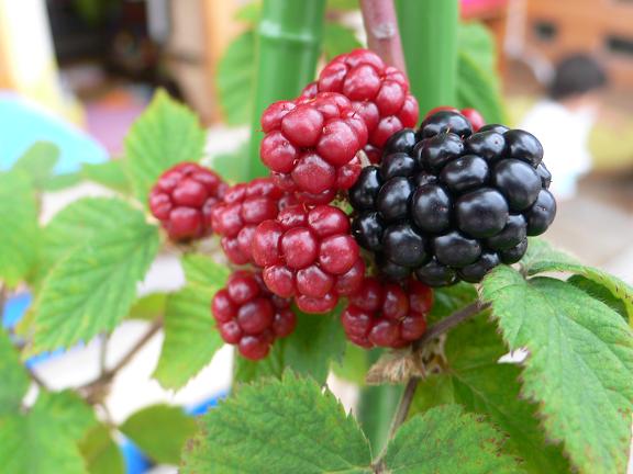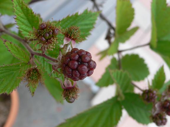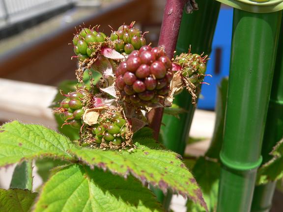 今朝ふと見ると、ラズベリーが1個だけ色づいてました!!