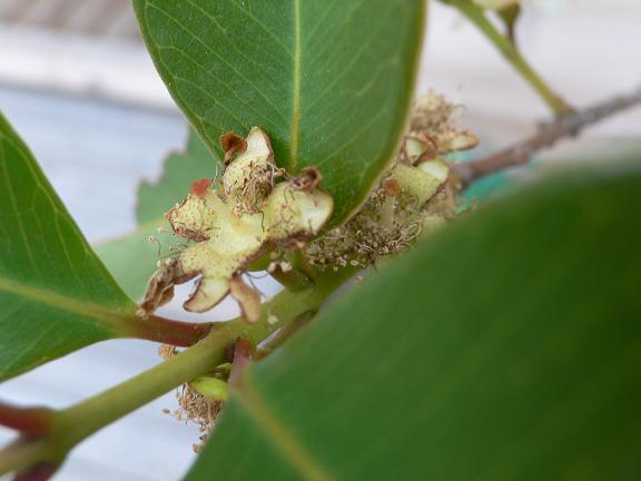 グアバはだんだんと実が膨らんできたよw (真ん中)