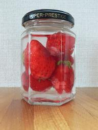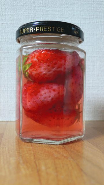 消毒した瓶に、苺と水、砂糖を入れるだけ!