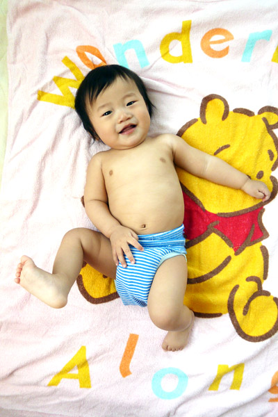 おむつ替えもジッとしていられないので、パンツ型のニシキにしました☆