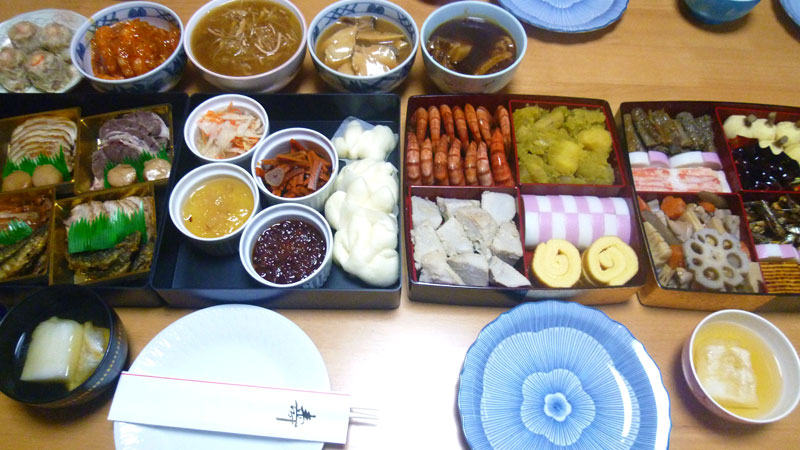 左側は森羅の中華お節。右側は手作りのお節。