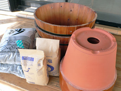 材料は笹村さんオススメの とりあえず何となく形を 樽と壷の間に砂と塩を詰めました。