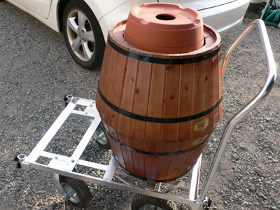 小さな炭が、鉢の隙間から入って、外枠の樽に火がついてしまって